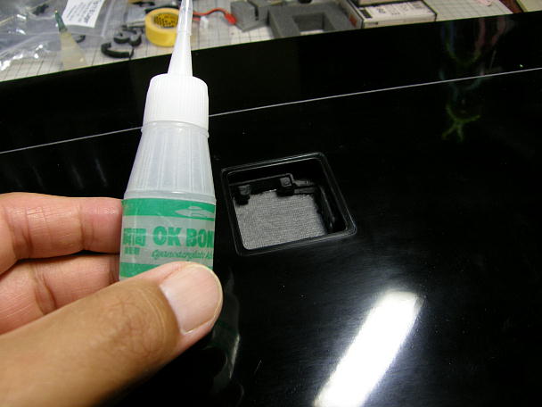 サーボの接着準備をします。 サーボホールをサンディングして足付けを行います。 ![]() 硬化促進剤を染みこませたティッシュで拭いておきます。 瞬間接着剤がいつまでもくすぶっていると、心材の ロハセルにまで染みこんで、表皮がデコボコになってしまうのを防げると考えています。 ![]() ロッドのラインを合わせて位置決めをしたら、ごく少量の低粘度瞬間接着剤で仮接着をします。 この後に サーボを外しますので、その時に剥がれなければOKです。 ![]() サーボを外したら、周囲全体に中粘度瞬間接着剤を塗り、硬化促進剤で固めます。 ![]() 表皮とサーボがギリギリのクリアランスだったので、サーボを若干削ってみました。 |