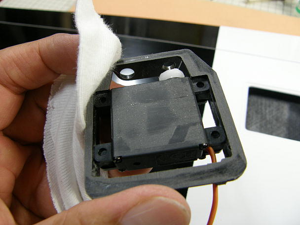 ![]() サーボホールの接着面をサンディングしておきます。 離型剤残りの心配もありますし、結構デコボコなんです。 ![]() サンディングをしたサーボホールを硬化促進剤で拭いておきます。 これにより、接着が確実になり、表面がデコボコになりにくくなります。 ![]() サーボロックも接着面のサンディング後、硬化促進剤で拭いておきます。 |