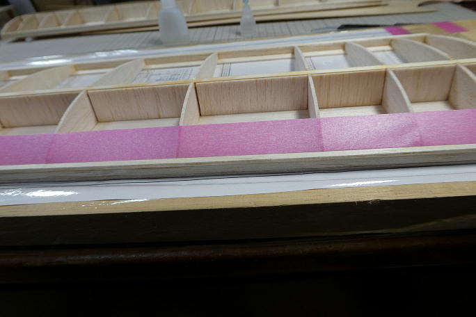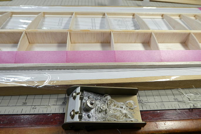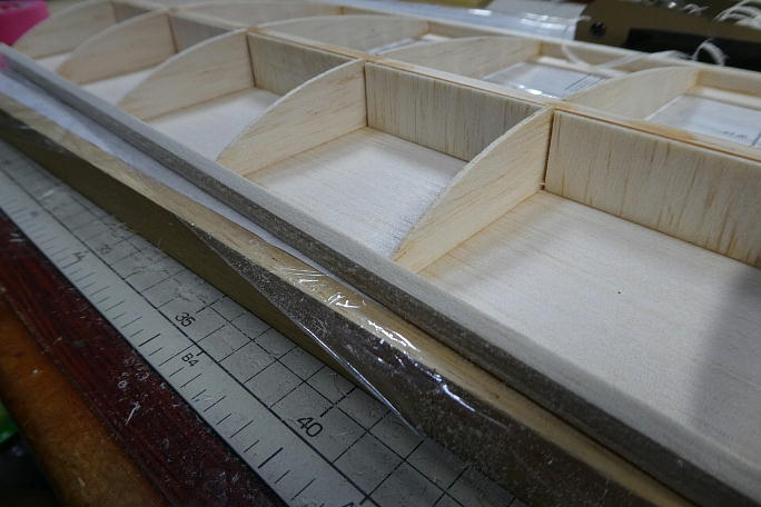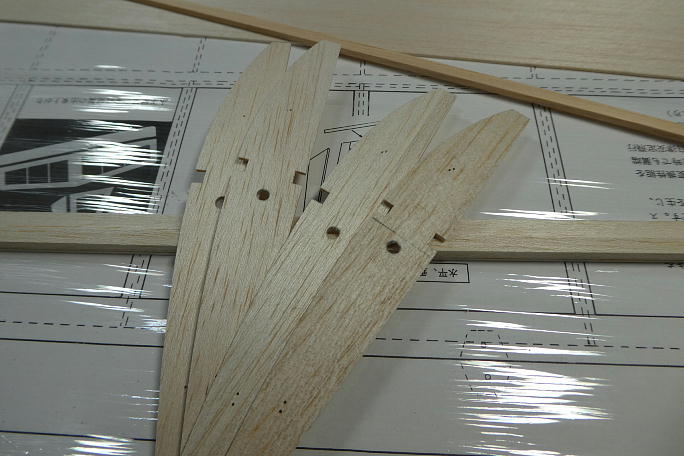 ![]() キットの箱からリブを取りだしてみると、ダイカットの物では無く、ミシン引きのリブになっています。 表面の仕上がりが綺麗で、 今までのダイカット製のように、修正を入れる必要がありません。 ![]() 片翼ずつ図面を定盤に貼り、ラップで養生をします。 ![]() リブは厚みに種類があります。 片翼分ずつ仕分けて、束ねておくと間違いがありません。 また、今回のものは、スパーが今までのバルサ製からヒノキ製になっています。 |
