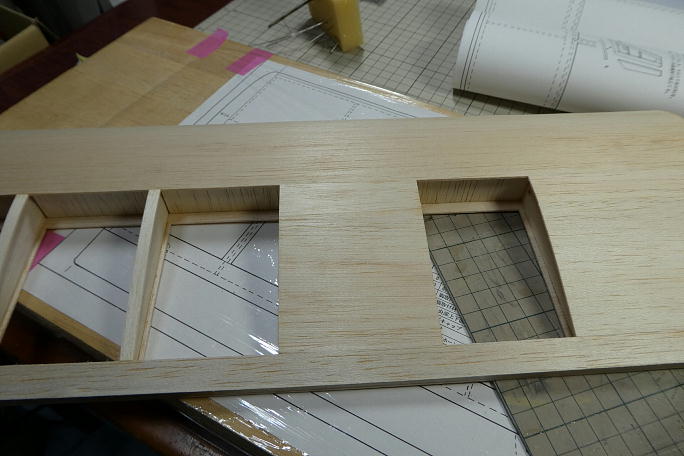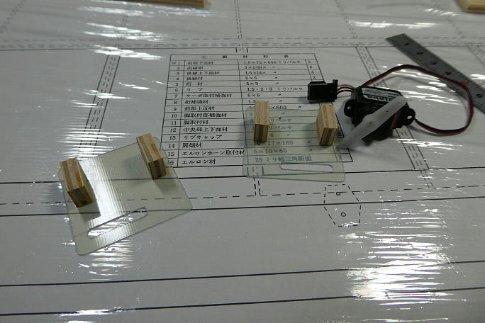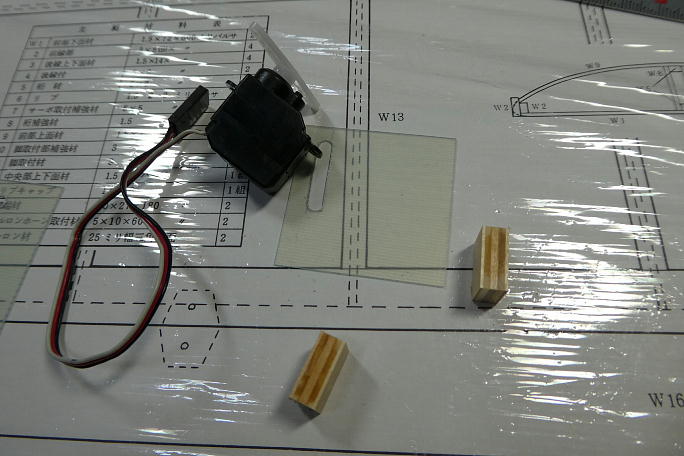 ![]() ![]() エルロンサーボはサーボカバーにサーボを取り付け、サーボカバーごとサーボを主翼に取り付ける方式を取ります。 0.5ミリFRP板から切り出したサーボカバーに6ミリベニヤから作ったマウントを接着、そこにサーボを取り付けます。 ![]() ![]() 下面プランクにサーボホールを開けた物を作り、接着、内側に2ミリベニヤで作った補強を接着します。 この補強に、サーボカバーがネジ止めされます。 ![]() サーボ部分の上面プランクも他のプランク同様、タイトボンドと瞬間接着剤のハイブリッドで拙着します。 |