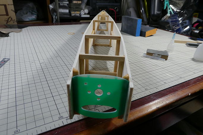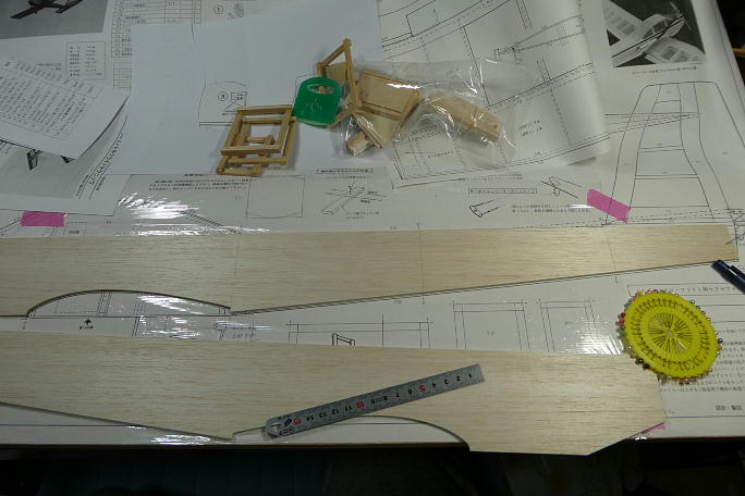 ![]() モーターマウントを作ります。 PCで画いたマウントをスプレー糊で1.5oFRP板に貼り付け、切り出します。 ![]() 切り出されたモーターマウントです。 モーター取り付け穴と空気取り入れ口も加工が済んでいます。 ![]() ![]() 胴枠を組み立てます。 図面に合わせて、キット通りに3ミリバルサで組んで行きます。 ムサシノオリジナル工法 ですが、とても合理的な工法ですね。 |