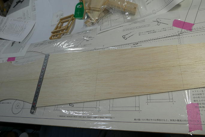 ![]() 二車輪化とジュラルミン脚を取り付けるため、メインギヤを取り付ける周辺に補強を入れます。 6ミリ×8ミリベニヤ を胴枠間に接着します。 モーターマウントもバルサを削って作った三角材を接着して補強にします。 ![]() 本来ならキャピン部を接着しますが、この部分は開放になりますので、3ミリ×3ミリバルサを接着しておきます。 |