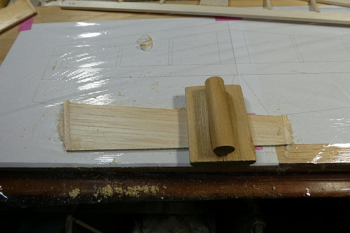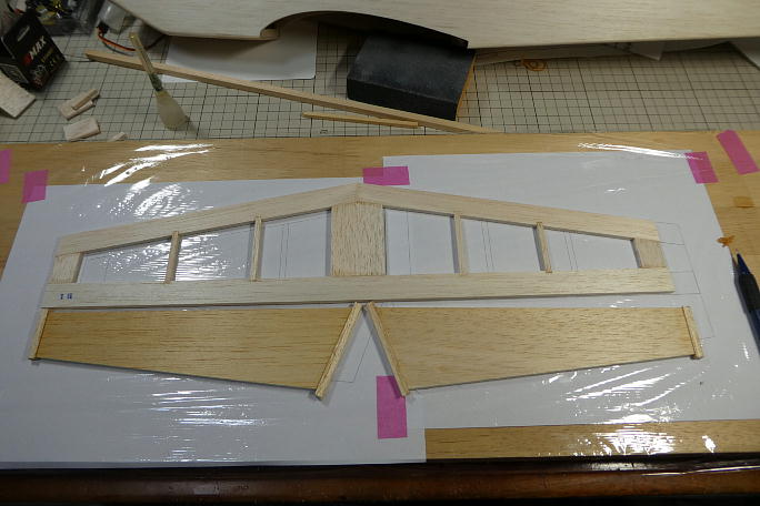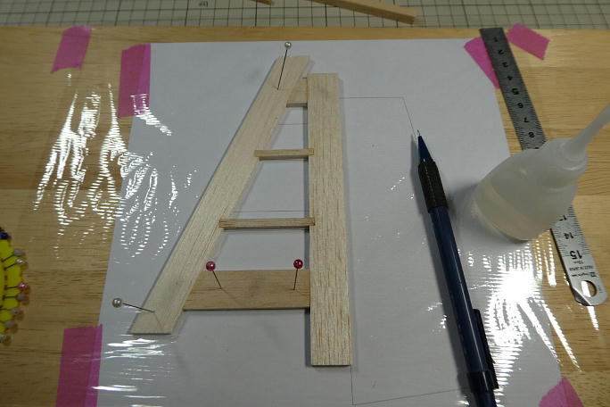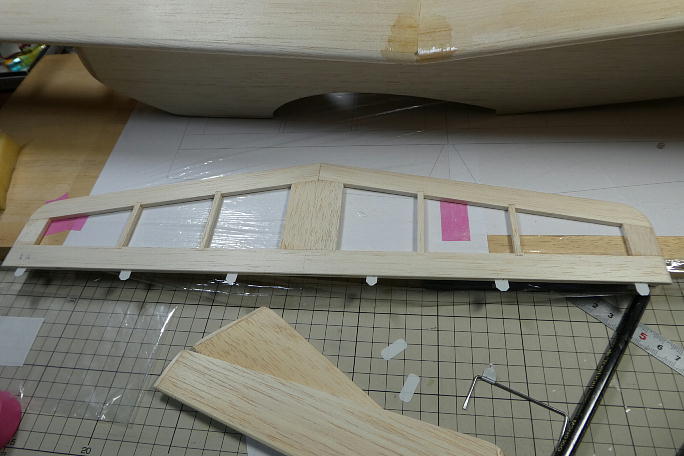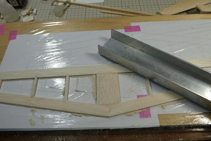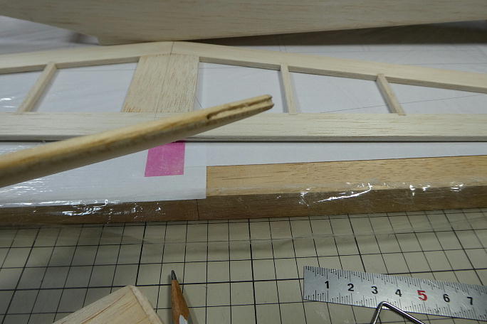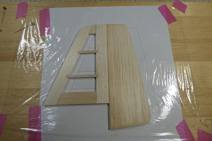 ![]() 垂直尾翼を作ります。 プリントアウトした図面の上で製作します。 キットの部材を極力使うようにしているので、 はみ出し方が不格好です。 ![]() 組み立てと不要部分の切り取りが終わった垂直尾翼です。 動翼は上下に木目の違う部材を入れて、曲げ強度を出しています。 ![]() ![]() 動翼部分はバルサカンナで削った後でサンディングして仕上げます。 後縁は、運用を考えてカツカツには削らず、 1ミリを目安にしています。 ![]() 角を丸めて、整形まで終わった垂直尾翼です。 |