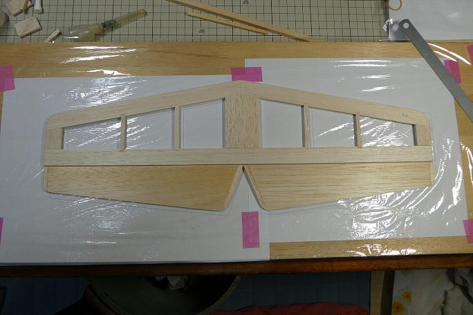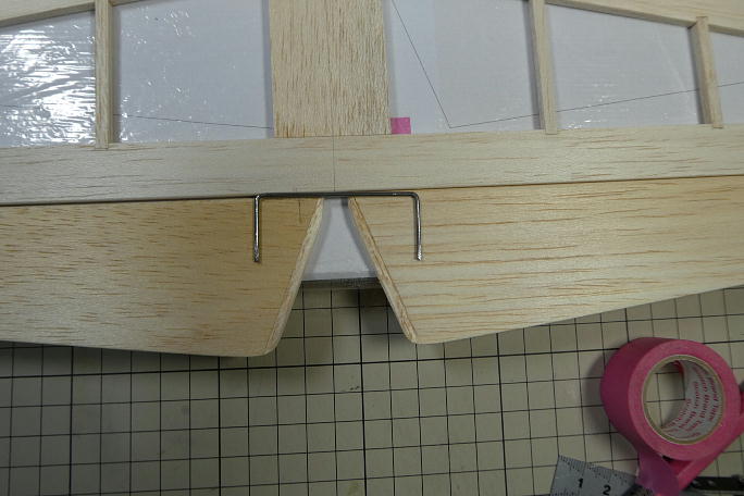 ![]() 水平尾翼を作ります。 こちらも、プリントアウトした図面の上で製作します。 図面は片側分しか作っていないので、 反転させた物を作って印刷しています。 こちらも部材は極力、キットの物を使っています。 ![]() こちらも、動翼には木目の違う部材を入れて、曲げ強度を持たせています。 ![]() 動翼部分を整形しています。 こちらもバルサカンナで荒削り、サンディングで仕上げています。 ![]() 水平尾翼の固定翼部分は大きなサンディングブロックで全体を平滑にします。 ![]() サンディングが終わった水平尾翼です。 ![]() 左右の動翼を連結させるコの字金物は1.8ミリピアノ線から作りました。 動翼に差し込む部分は削って鋭利 にしてあります。 ![]() コの字金物が入る溝を加工します。 ![]() ビールの空き缶からコの字金物のサポートを作りました。 固定翼側に差し込み、コの字金物の動きを正確に します。 ![]() 使うヒンジはムサシノのライトヒンジです。 ![]() フイルムを貼る前にヒンジの入るスロットを加工しておきました。 ![]() 尾翼が組み上がった所で、胴体に主翼を取り付け、両翼端に水糸を張って水平尾翼とのアライメントを確認します。 |