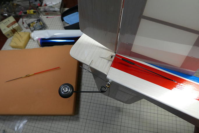 ![]() エレベーター、ラダーリンケージに使う、L字に曲げた1ミリSUS線の接着部分をサンドペーパーで良く磨いて 足付けにします。 ![]() 1ミリカーボンロッドとL字に曲げたSUS線をシュリンクチューブで束ねて、瞬間接着剤で固めます。 ![]() サーボホーンにもL字に曲げたSUS線を取り付け、シュリンクチューブを掛け瞬間接着剤で固めてで抜け止めをします。 ![]() カーボンロッドにはテフロン加工を施しておきます。 ![]() ニュートラル出しが終わったエレベーター、ラダーサーボです。 ![]() エレベーターリンケージの様子です。 可動尾輪の様子も良く判ります。 ![]() ラダーリンージの様子です。 |
