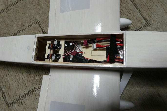 ![]() モーターは回転方向を確認しておきます。 受信機やバッテリーの位置の関係でモーターとESCが離れるので、長いよう ですが、コード類は詰めずに使用します。 ![]() ESCはバッテリーデッキの下に置いてあります。 |