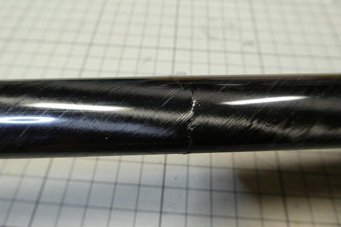 | 墜落したPROGRESSを修理します。 状況ローターに巻かれて軟着陸した際にエレベーターリンケージのアウターチューブ(ポリイミドチューブ)が剥離。 そのままランチしたところ、エレベーターリンケージのロッドエンドがエレベーターホーンから外れてエレベーターが効かない 状態になりました。 そのままお約束の地面まで垂直降下して地面に5センチ以上刺さりました。 ![]() ブームは中程で断裂しています。 ただ、完全に取れていたわけでは無く、微妙に繋がっていた状態です。 また、リンケージ のカーボンロッドやチューブは無事でした。 ![]() キャノピー後部のカーボンエリアで胴体の1/3周に近い割れが入っています。 ![]() キャノピー中程、グラスエリアで15ミリ程のクラックが入っています。 ![]() 左翼上面、エルロンサーボより外側で表皮の浮き上がりが出来ています。 ![]() 同じ位置の下面にも表皮の浮き上がりが出来ています。 ![]() 浮き上がりの後ろ側にクラックが入っています。 ![]() 前縁が口を開けています。 |