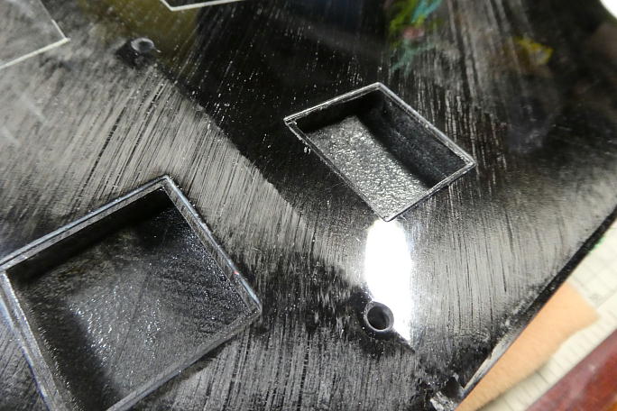 ![]() エルロンサーボのサーボホールにカーボンパウダー入り5052を塗ります。 特に、剥き出しになったコアとスキンの 境目に塗り、接着を強固にします。 また、剥き出しになったコアの強度を上げて、飛ばし込んでいく内に主翼が柔くなって行くのを防ぎます。 ![]() エルロンリンケージの取り出し口もコアとスキンの境目を重点的にカーボンパウダー入り5052を塗っておきます。 |