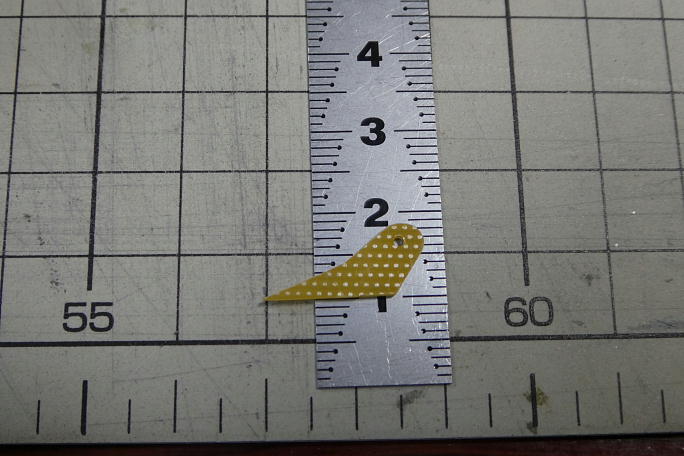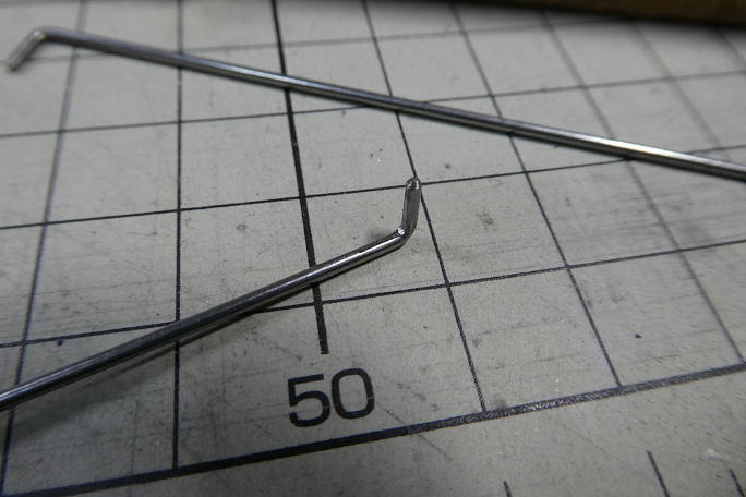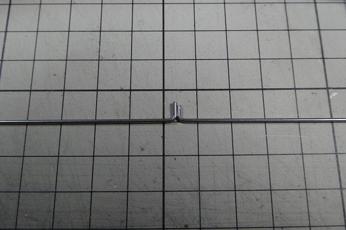 付属のエルロンホーンです。 レバー長は6.5ミリです。 ![]() リンケージロッドの曲がりをよりシャープにすべく、曲がっている内側を軽く削っておきます。 ![]() 曲がった部分の長さが5ミリあって長すぎるので、1ミリカットして4ミリにします。 ![]() エルロンホーンとリンケージロッドを組み合わせると、ロッドとホーンの隙間はこのくらい。 加工されているリンケージの 取り出し口とエルロンホーンの取り付け部分の位置関係と合致します。 ![]() エルロンホーンの接着部分をサンドペーパーで荒らして足付けにします。 |
