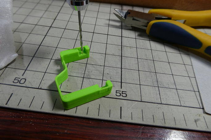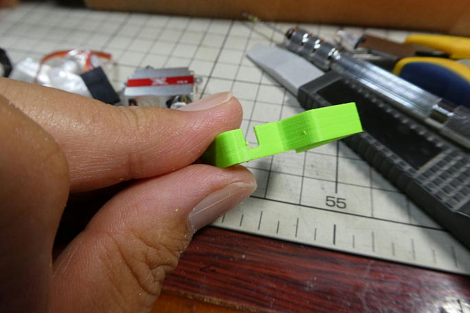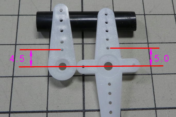 サーボベッドにネジ止め用の下穴を加工します。 一応、ネジ穴はモールドされているのですが、少しキツいようです。 1.2ミリのドリルを使用しました。 ![]() サーボの取り付けには、サーボ付属のタッピングねじを使いますが、フィッティングをしたときにねじ切れてしまいました。 ![]() サーボコードのグロメットの逃げが少なかったので広げてあげます。 これ以外にもバリの様な物が結構出ているので、 必要に応じて加工を加えます。 ![]() サーボを固定するネジは、強く締めると先端の尖った部分がサーボベッドから出てしまうので、先端を1ミリカットして おきます。 ![]() サーボを仮組みして、サーボが削れない程度にサーボベッドの接着面を研磨して平滑にしておきます。 ![]() サーボホーンは5ミリ穴の部分を使用します。 4.5ミリでも良かったのですが、保険を掛けました。 今回はサーボはネジ止めなので、最悪、完成後でも組み替えも可能です。 X08の出力軸のスプラインは、17本の奇数スプラインですので、180°サーボホーンをひっくり返すと、1スプライン分 角度が変わってしまいます。 サーボ筐体とできるだけ直角になる向きを探して、サーボホーンにマーキングをすると 良いでしょう。 ![]() 5ミリの所の穴を、ロッドエンドに合わせて1ミリのドリルで広げておきます。 元々開いている穴は0.8ミリ用なのですが、 実際に0.8ミリピアノ線を入れるとガタがあり、きむらクラフト的にはNGです。 ![]() サーボホーンの不要部分をカットして成型します。 ![]() 1520μsのニュートラル位置で、1スプライン分傾けてサーボホーンを取り付けます。 サーボホーンには使用するエルロンの向きをサインペンで記入しています。 ![]() そこから125μsオフセットした位置がこの機体のエルロンサーボのニュートラルになります。 この125μsオフセットは、フタバの送信機では200/240ステップ分のサブトリムです。 この数字ならば、まだ サブトリムでの調整代が取れます。 |