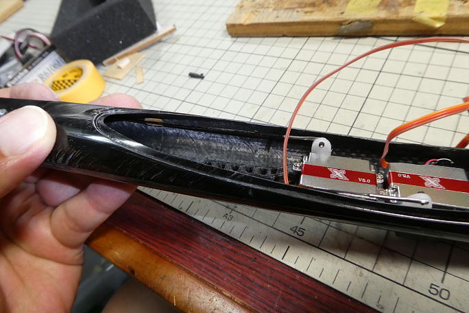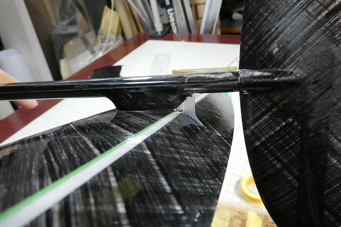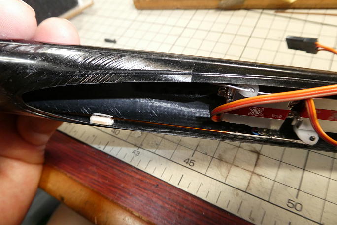 ![]() リンケージの振れ止め馬です。 サーボホーンの位置の関係で、ラダー側とエレベーター側で形状が異なります。 こちらはラダー用の馬で、3ミリバルサから削り出しています。 こちらはエレベーター側の馬で、1.5ミリバルサからの削り出しです。 ![]() エレベーター用の馬の接着位置です。 ![]() ラダー用の馬の接着位置です。 ![]() エレベーターリンケージの様子です。 ホーンを外して目一杯エレベーターをダウンにしています。 ここまで下げると、 マウント内に隠れているリンケージを見ることが出来ます。 ![]() ラダー側のリンケージの様子です。 ニュートラルでは少しカーボンロッドが反っています。 |