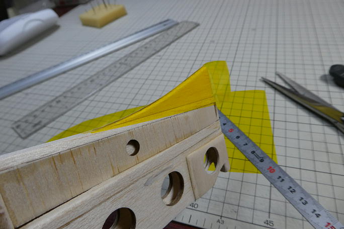 ![]() キャノピーは図面に型紙があるわけではないので、完全に自作になってしまいます。 先ずは、薄いPPシート(何かの包装紙) をあてがって、その上からサインペンでカットラインを書き込みます。 ![]() カットラインに沿って切り取った薄いPPシートをもう一度機体に当てて、形状を確認します。 ![]() PPシートを型紙に0.2ミリの塩ビ板にカットラインを書き込み、切り出します。 ![]() キャノピー取り付け用のネジ受けを2ミリベニヤから切り出して接着します。 ![]() 1.7ミリのタッピングねじで取り付けて見ました。 ![]() ハッチのロック用にネオジウム磁石を接着します。 ![]() ハッチの裏にはワッシャーを接着して、磁石の受けとします。 |