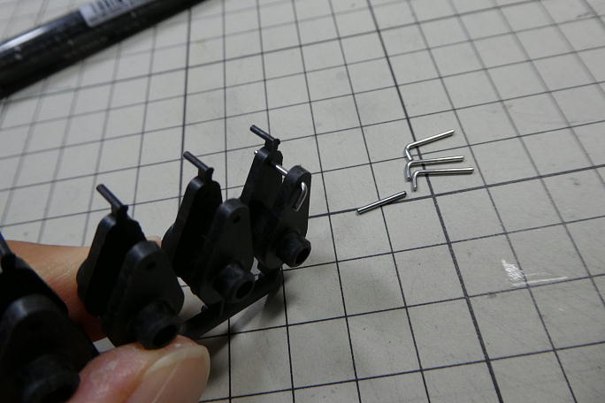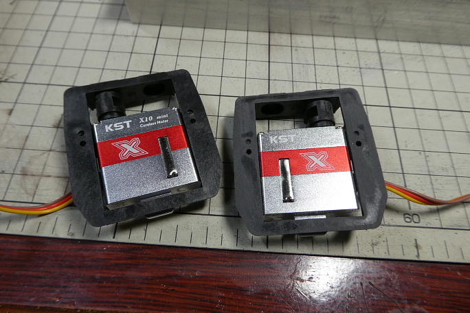 ![]() サーボホーンが数種類付属します。 フラップは大きな舵角が欲しいので、出来るだけ大きなサーボホーンを使いたい のですが、この機体は通常と逆で、ヒンジ寄りにホーンが来るように作り込まれています。 そのため、大きなホーンが使えず、下から三つ目のホーンを使用しるしか選択肢がありません。 ![]() サーボホーンの精度が悪くて、スプラインにホーンを押し込むのに大変苦労をしました。 また、ベアリングも そのままでは入らず、軸の部分を削って調整する必要がありました。 サーボホーンはニュートラルより158μsずらしてあります。 ![]() 更に、サーボをベースに挿入したところ、取り付けねじ部とベースの間に隙間が出来てしまいました。 締め付ける事も出来なくはありませんが、明らかに斜めに付いてしまい、ベースの底面よりサーボがはみ出して しまいます。 ![]() 3ミリのワッシャーを入れると丁度隙間が埋まるので、ベースにワッシャーを瞬間接着剤で接着しておきました。 ![]() サーボを取り付けた状態で、底面をサンディング、接着面を平滑にします。 左が処理前、右が処理後です。 この製品は何回か使っていますが、結構「ヒケ」があってそのままでは接着不良 を起こしそうです。 |