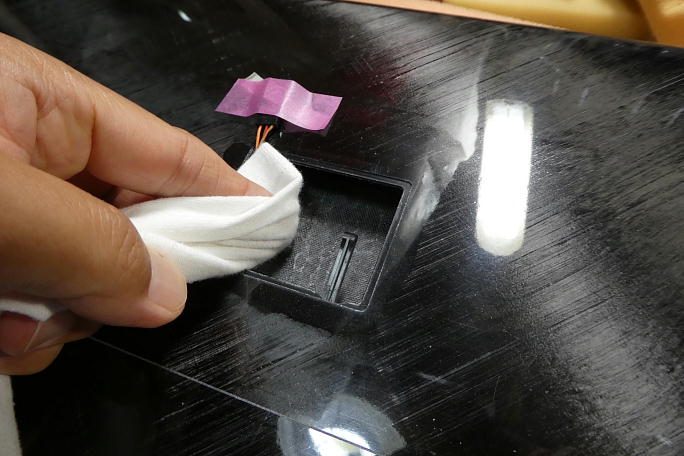 ![]() 主翼の接着面をサンディングしておきます。 繊維やゴミなどが樹脂に練り込まれていたり結構デコボコしています ので、平らにしておきます。 ![]() さらに、硬化促進剤を染みこませたウエスで接着面を拭いておきます。 瞬間接着剤の硬化に時間を掛けると、 主翼表面に歪みなどの影響が出てしまうのです。 ![]() サーボベースの接着面も硬化促進剤を染みこませたウエスで拭いておきます。 この時に使用している硬化促進剤は、ロックタイトの712です。 ![]() 動翼のニュートラルを合わせてサーボを158μsずらした値で固定、サーボベースの四隅のみ僅かな中粘度 瞬間接着剤で仮止めします。 瞬間接着剤塗布後は直ぐに硬化促進剤を使って硬化させます。 この時の硬化促進剤はボブスミスの硬化促進剤 を使います。 ![]() 一度サーボを外し、サーボベースの周囲全周に中粘度瞬間接着剤を流します。 こちらもボブスミスの硬化促進剤 で直ぐに硬化させておきます。 ![]() 機体がF5Jバージョンで柔いので、サーボの負荷を下面スキンにも持たせる事にしました。 マスキングをして、サーボベースと下面スキンの間にマイクロバルーン入り5分エポキシを充填して接着します。 ![]() 硬化した接着部分です。 ![]() サーボを納めてコードを束ねます。 |