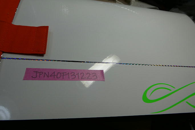 ![]() ![]() ![]() カッティングマシーンで切り抜いたJPNナンバーを主翼に貼りました。 マスキングテープで転写しています。 |