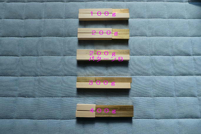 ![]() フライト時のメカ室です。 バッテリースペースを出来るだけ大きく確保するようにデザインしたので、ダイノジーの 800mAhのバッテリーではかなり空きスペースが出来ます。 より大きなバッテリーも搭載が可能です。 ![]() 付属のバラストに杉角材を足してバラストパターンを作りました。 100グラムから400グラムまでのパターンを 考えました。(写真は片翼分です。) |