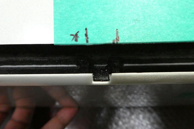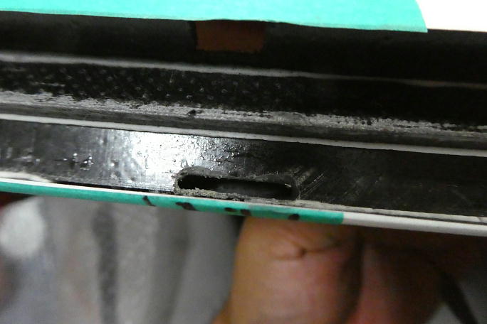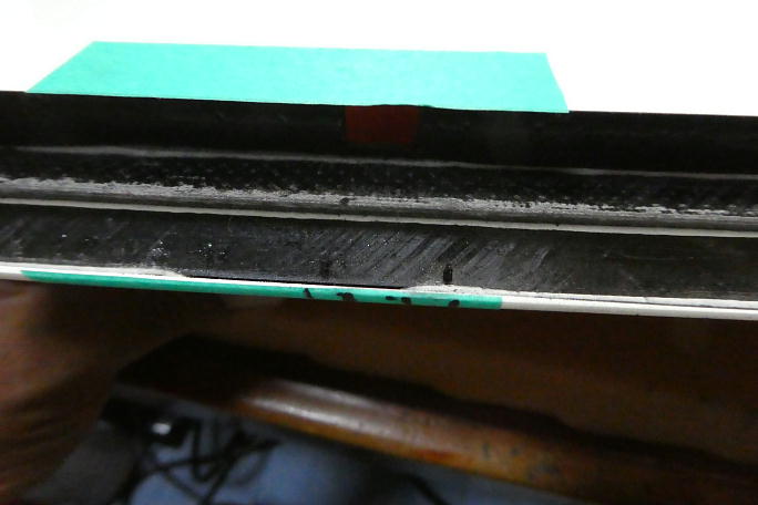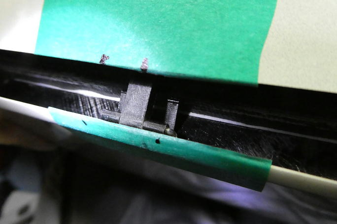 ![]() ネットで拾った画像ですが、IDSの取り付けのイメージが今ひとつ掴めなかった時に大いに参考になった絵です。 ![]() ![]() ロッドにホーン部分を取り付けて、ホーンの幅をギャップシールに貼ったマスキングテープに転写します。 この幅で 動翼に切り込みを入れます。 ![]() リューターを使って動翼のスパー部分を切り開きます。 サイズはホーンにピッタリではなく、少しゆとりを持たせておきます。 ピッタリにしてしまうと、接着剤の充填がしにくいからです。 面取りも施します。 ![]() 位置決めがし易いように、ロッドを取り付けた状態で中粘度瞬間接着剤をホーンの足、ホーンの隅のみ接着してロッドを 取り外します。 要点しか接着しないのは、まかり間違ってロッドが接着されてしまうのを恐れた為です。 ロッドを取り外した後、大きめに開けて置いたホーンと動翼のスパー部分の隙間から中粘度瞬間接着剤を流し、硬化 促進剤で固めます。 硬化促進剤を使用するのは、ロハセルの変形を防ぐ為です。 そのあと、接着面の周囲にカーボンパウダー入り5分エポキシを充填して補強とします。 接着剤を流した隙間も同時にに 埋めます。 ![]() ホーンの逃げを加工します。 ニュートラル時でもロッドとギャップシールが干渉しますが、必要最小限に留めます。 ![]() 加工されたギャップシールとカーボンパウダー入り5分エポキシを充填したホーン回りです。 |