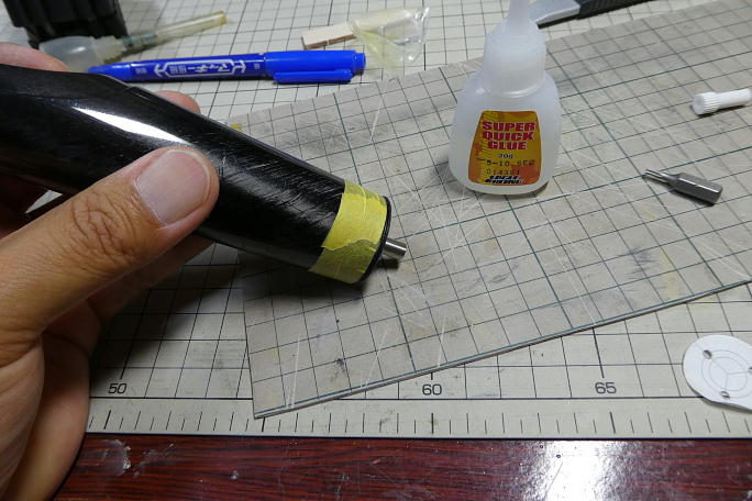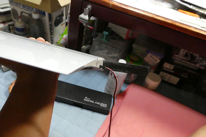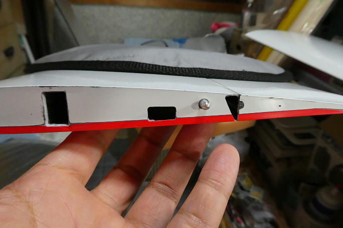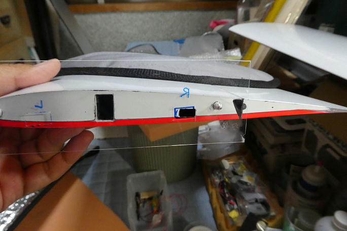![]() センター翼のコネクタ取り出し口を写したテンプレートを作り、外翼のコネクタ取り出し口を合わせます。 ![]() 少し大きめに広げておきました。 ![]() センター翼に取り付けるメスコネクタは翼端に瞬間接着剤で接着しますので、ハウジングに足付けをします。 ![]() カンザシの角度に合わせてハウジングを接着します。 ![]() 突き出しは2oです。 |