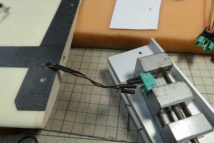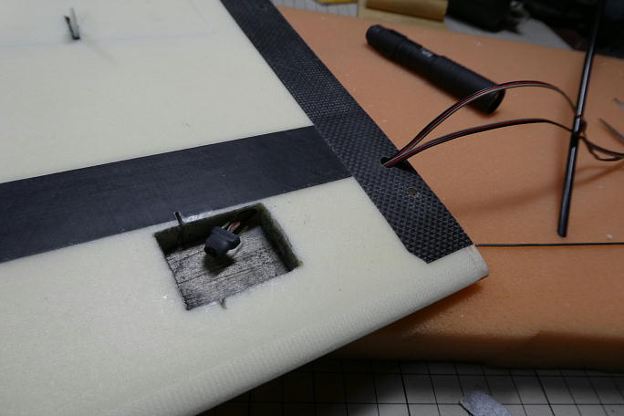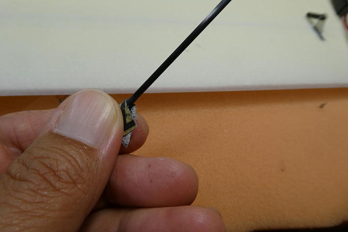 ![]() コードを取り出す穴を加工します。 前作ではこの穴が加工されていましたが、今回のロットではユーザー加工に変わった ようです。 ![]() ![]() エルロンサーボ用、フラップサーボ用の延長コードを通します。 コアに開いているコードホールが狭いので、通すのには 苦労します。 ピアノ線にコードをテープで固定して何とか通しました。 ![]() コードが通った所で胴体との接合用のコネクターをハンダ付けします。 MPXコネクターを使用します。 |