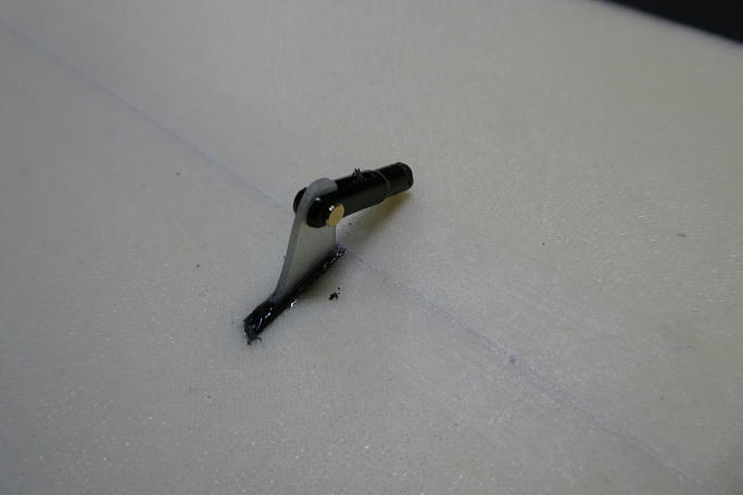 ![]() サーボホーン側のロッドエンドを加工します。 素材は1oSUS線です。 ![]() リンケージロッドには2oカーボンパイプを使用します。 ロッドエンドをカーボンパイプに瞬間接着剤で接着します。 ![]() 動翼ホーンに樹脂クレビスをしようします。 このクレビスは瞬間接着剤が効くので重宝しています。 |