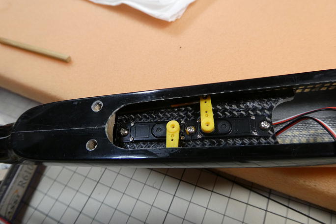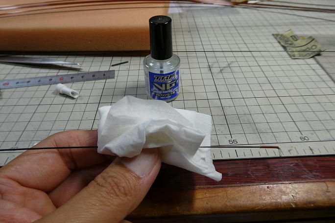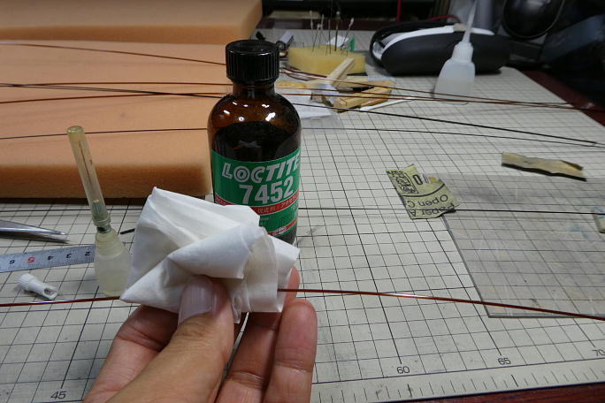 ![]() リンケージ用のカーボンロッドにはテフロン加工を施します。 ティッシュに薬剤を染みこませてロッドを拭き上げます。 ちなみに、使用しているのはタミヤのVGフッ素コート剤です。 ![]() アウターのポリイミドパイプには硬化促進剤を塗っておきます。 ![]() 胴体テールパイプにも硬化促進剤を塗ってきます。 ![]() ロッドエンドをサーボに接続します。 見えにくいですが、ロッドエンドの抜け止めには1ミリのシュリンクチューブを収縮 させた物を被せて瞬間接着剤で止めています。 ![]() アウターのポリイミドパイプの接着にはチューブ内にリンケージロッドを通した状態で行います。 リンケージのライン を決めたら、軽くチューブにテンションを掛けて低粘度瞬間接着剤で接着します。 瞬間接着剤はダーッと流さず、10センチ間隔で一滴ずつ垂らせば充分です。 ![]() エレベーターリンケージです。 スロープ部分にサポートを入れています。 ![]() ラダーリンケージです。 こちらもスロープ部分の中間あたりにサポートを入れています。 |