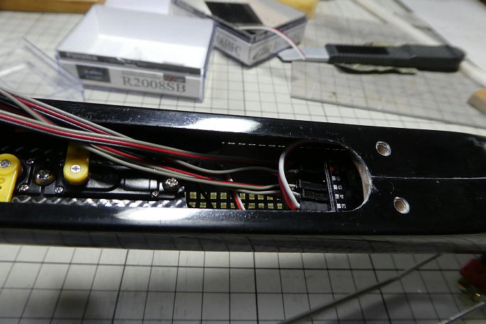 受信機は前作同様、サーボベッドの前に押し込みます。 ![]() キャノピーラッチは2ミリのFRP棒です。 キャノピーの接着部分をサンディングして、中粘度瞬間接着剤で仮接着を します。 ![]() 補強の為にマイクロバルーン入り5分エポキシを盛ります。 マスキングをしてマイクロバルーン入り5分エポキシを こんもりと盛り上げ、直ぐにマスキングテープを剥がします。 そうすると、盛り上げたエポキシが自然な小判型に広がりますが、硬化が始まるまでマスキングをしておくと、四角く スパッと切れたような形に仕上がってしまいます。 |