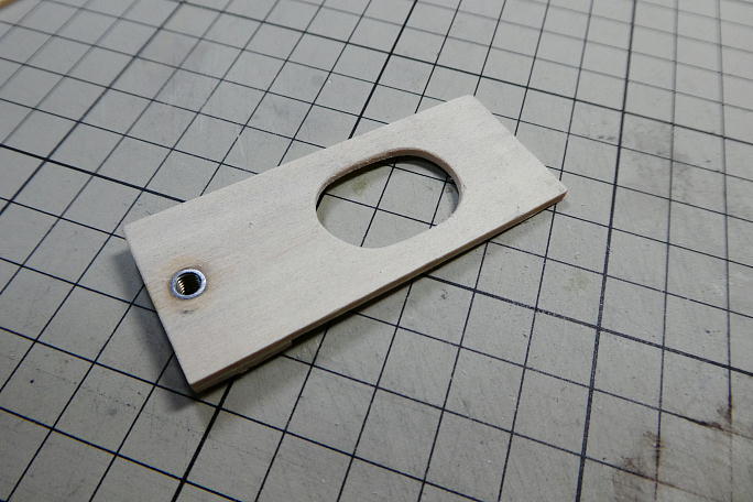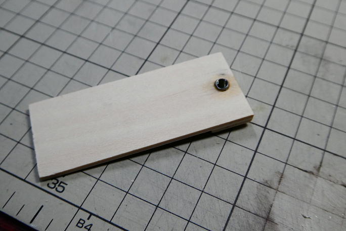 ![]() 3*3バルサで底部の補強と下面プランクの接着面積を確保します。 ![]() 2ミリベニヤで前側の主翼取り付けねじ受けを作ります。 爪付きナットを打つところは二枚重ねにしています。 ツバ付きナットは叩き込んでも良いのですが、ボルトをねじ込んで引き上げると確実に爪を食い込ませられます。 ![]() 瞬間接着剤を流して接着します。 ナットの首部分が5ミリあったので、当然1ミリはみ出します。 ![]() サンディングボードでツライチになるまで削ってあげます。 ![]() 強度過多のようなので、サービスホールを開けておきました。 ![]() 胴体に接着します。 胴枠と接着する事で、格段に強度が上がります。 |