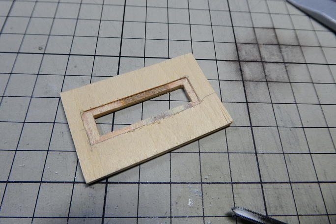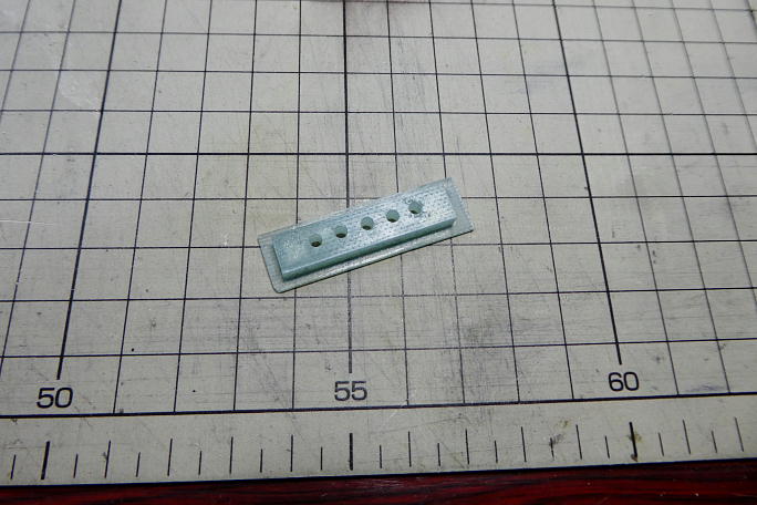 フックは位置の調整が可能なように5個穴を設けます。 フック受け自体は1.5ミリFRP板枚合わせ。 フランジ部分 は1ミリFRP板です。 5ミリ間隔で穴を開けます。 ![]() 2.5ミリドリルで下穴を開けました。 ![]() M3のタップでネジを切ります。 ![]() 底部のフック受けを納める部材は3ミリベニヤです。 フック受けがフランジを含めてスッポリ収まるように加工を 施します。 ![]() 胴体に接着し、後部の下面プランクも接着しておきます。 下面プランクは3ミリバルサですが、出来るだけ固い部位 を選びました。 |