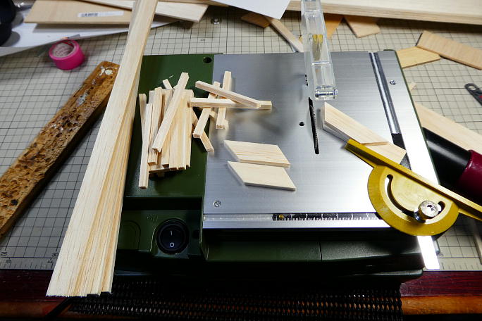 ![]() Vテールの図面は電動版のピメンタの時に書いた物をそのまま使用します。 ![]() テーブルソーを使って部材を切り出していきます。 板厚は4ミリで、出来上がるとかなりしっかりとした物になります。 他のRES専用機は3ミリのソフトバルサを使う事が多いのですが、曳航の離脱時にはかなりの負荷が掛かるので しっかりとした物を作っておきたいのです。 ![]() 後縁材になる部材には、1ミリ×4ミリのカーボンフラットバーをスパーとして割り入れします。 |