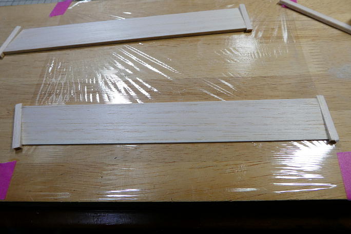 ![]() 動翼をくさび状に加工します。 バルサカンナでザッと形を整え、サンディングボードで仕上げます。 ![]() 成型の終わった動翼です。 後縁は運用を考えて1ミリ以下にはしていません。 ![]() 捻れ剛性確保、変形を防ぐ為に端面に木目の違う部材を接着します。 ![]() 固定翼部分と合わせて、全体を合わせて成型します。 |