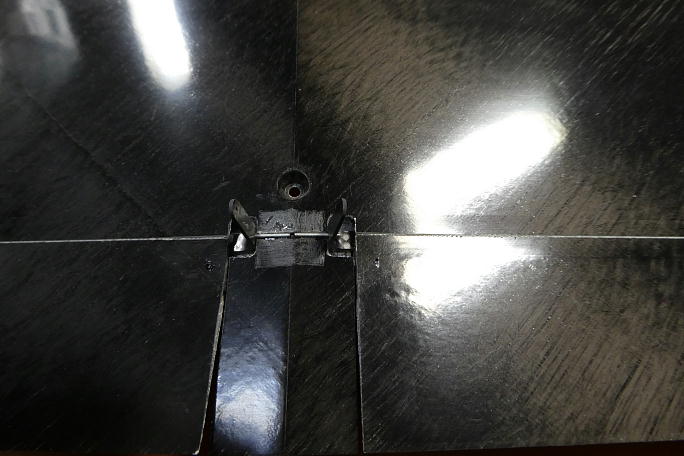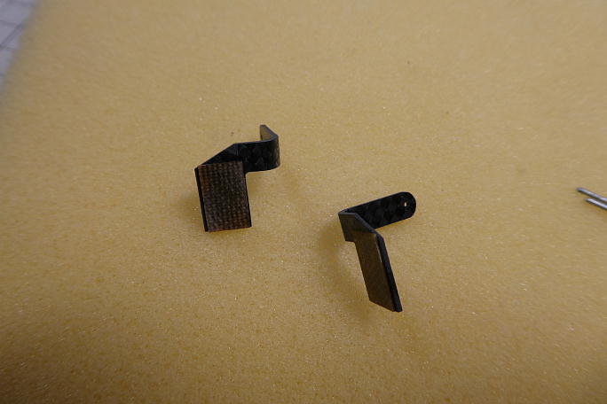 エルロンホーンに付属のFRP板を接着し、厚みを稼ぎます。 ![]() 主翼のエルロン部分、エルロンホーンを接着するポケットに1ミリの穴を開けます。 エルロンホーンは瞬間接着剤で 接着しますが、接着剤を全面に行き渡らせる為の物です。 ![]() マスキングをして自作の押さえ板が接着される部分をサンディングしておきます。 ![]() ピンを瞬間接着剤で仮接着し、そのピンをガイドにエルロンホーンをポケットに低粘度瞬間接着剤で接着します。 前工程で開けた1ミリの穴からも低粘度瞬間接着剤を染みこませます。 ![]() 自作押さえ板の裏面もサンディングしておきます。 ![]() ピンとカバーの溝を合わせて低粘度瞬間接着剤で接着します。 |