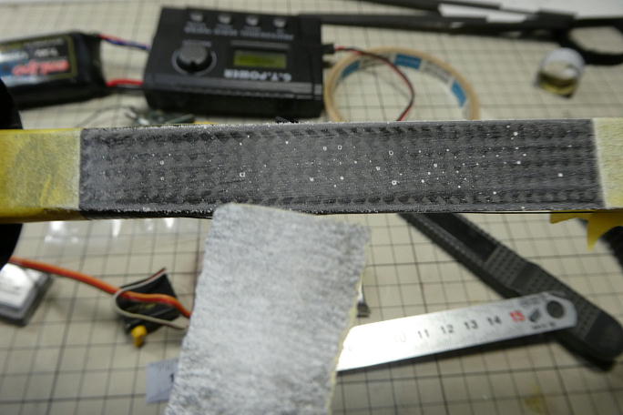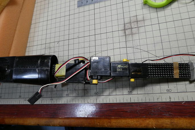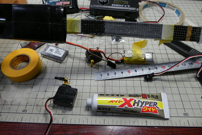 ![]() サーボを列べて位置決めをします。 エルロンサーボのD60がかさばるので微妙な位置決めが必要でした。 ノーズコーンを被せて、干渉が無い事を確認しておきます。 受信機はケースが無いとかなり搭載が楽になるので、外す事にします。 ![]() 接着にはシリコン系のスーパーXを使用します。 接着面を平滑にするとともに、足付けの為にサンディングをしておきます。 他のサーボも同様に足付けをしておきます。 サーボの筐体の隙間から油分が漏れている事が多いので、アルコールで脱脂もしておきます。 ![]() 胴体側も良くサンディングしておきます。 こちらは離型剤が残っている事が多いので、サンディングの後にアルコール での脱脂も施します。 ![]() サーボと胴体両方にスーパーXを薄く塗り、半乾きで押し付けます。 サーボは一つずつ接着していきます。 ![]() この様なレイアウトになりました。 |