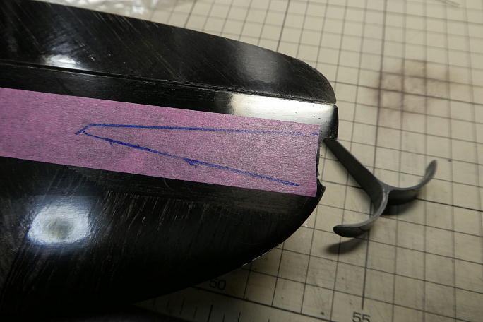 ![]() 翼端ペグの取り付けのための切り欠きを作ります。 自分の機体や取説に則って切り欠き位置をマスキングテープに ケガキます。 ペグは未だに統一はされませんね。 翼端ペグと貫通ペグとが混在しています。 ハードポイントの工作がメーカーで しっかりとしていれば貫通ペグの方が良いように木村は思います。 翼端のエッジはちゃんとしておきたいです。 ![]() リューターで削り込みます。 粉が散らないように掃除機の吸込み口が下で待ち受けています。 ![]() ペグの足の部分をマスキングテープに書き移して、そのイメージで中のコアを掻き出します。 ![]() コアの掻き出しには糸鋸の刃を加工した物を使っています。 最大に差し込む位置をマスキングテープでマーキング しています。 ![]() ペグには抜け止めの加工を施します。 また、表面も研磨し、脱脂をしておきます。 また、股の部分は主翼翼端のカーブに沿うように削り込み、指掛け部分の角を落としておきます。 ![]() 5052にカーボンパウダーを混ぜて接着剤にします。 粘度を高くしてしまうと、コアが無くなって表皮だけになった 部分が脹らんでしまうので、最初の樹脂だけの粘度程度に混ぜるカーボンパウダーの量を加減します。 ![]() ヘラなどを使って、たっぷりとカーボンパウダー入りエポキシ樹脂を流し込みます。 隅々まで行き渡らせ、ハード ポイントとします。 ![]() ペグを何回か抜き差しして、その都度樹脂を継ぎ足し開口部から溢れるまで行います。 最終位置までペグを 押し込んだら、はみ出た部分をヘラで均して整形しておきます。 |