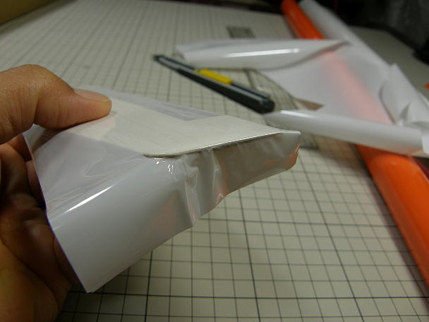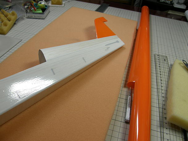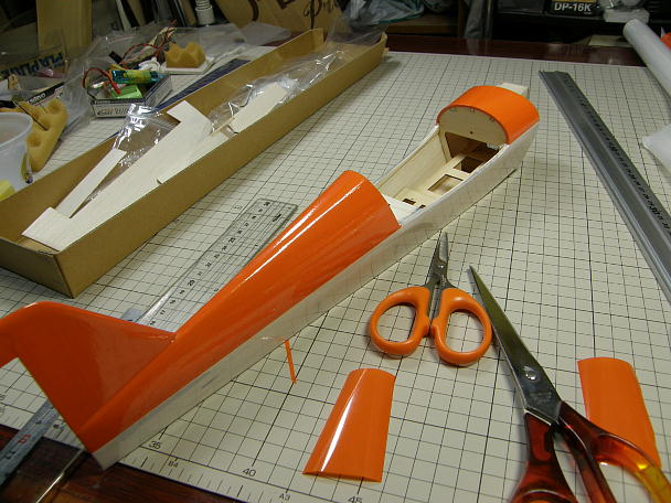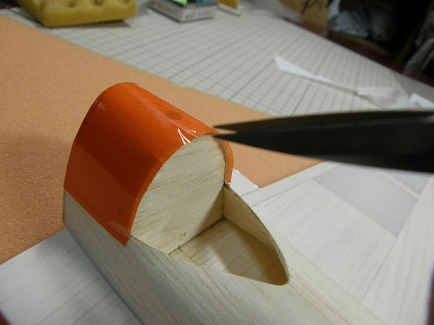 ![]() 胴体のカバーリングです。 使ったフイルムはOKのEライトフイルムです。 胴体はホワイトとオレンジのツートン にします。 下部のホワイトの部分は平板なので普通に貼っていきます。 垂直尾翼は先に貼っておきました。 ![]() 胴体の上半分はムリせずに左右二分割で貼りました。 ![]() 水平尾翼の翼端部分の処理です。 アイロンを高温にセットして、思いっきり引っ張って馴染ませます。 ![]() コクピット後部の折り返しはハサミで細かく切れ目を入れて折り返しました。 ![]() こんな感じになりました。 ![]() 主翼のカーブに合わせる為に、図面から型紙を作ってフイルムを切り出します。 ![]() こちらは4分割で貼っていきます。 ![]() こんな感じに貼れました。 ![]() 真っ白で淋しいので、翼端にチェックを入れました。 ただ、ひたすら列べてアイロンで固定していきます。 この場合、アイロンの温度は、裏の糊が溶け出すもフイルム自体が収縮しない温度を探ります。 ![]() こんな感じになりました。 ![]() 開口部はハンダゴテを使って溶かし取ります。 |