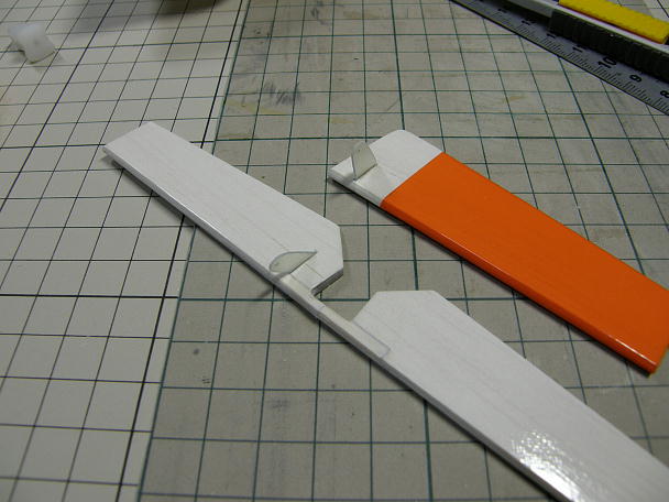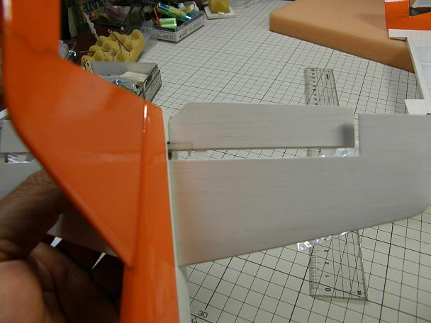 ![]() ラダーとエレベーターにホーンを接着。 ホーンはベニヤをレーザーカットした物が付属しますが、0.5ミリ FRP板から切り出しました。 ![]() ヒンジはムサシノライトヒンジです。 そのままでは大きすぎるので、ランナー部分を短冊状に切って、ヒンジの 形に整形します。 水平尾翼はエレベーターとセットで胴体に取り付けます。 水平尾翼にエレベーターを取り付けた状態では胴体 のスロツットに入りませんし、後からも入らない知恵の輪状態です。 エレベーターにヒンジを瞬間接着剤で接着、一度水平尾翼と組み合わせて見てから、一端バラします。 先にエレベーターを胴体のスロットに挿入、90°立てた状態で水平尾翼を挿入、ヒンジを水平尾翼に 差し込みます。 差し込む際に、ヒンジに少量のスーパーXを塗って接着します。 |