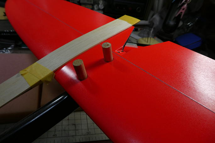 ![]() スクラップバルサをマスキングテープで閉じて、ニュートラル出しツールを作りました。 10ミリのバルサ丸棒が垂直尾翼 のカンザシと同サイズなので、製作時のダミー垂直尾翼として使用します。 ![]() リンケージカーボンパイプの接着部分をサンディングしておきます。 ![]() サーボテスターでニュートラルを出して、樹脂クレビスとカーボンパイプを瞬間接着剤で接着します。 |