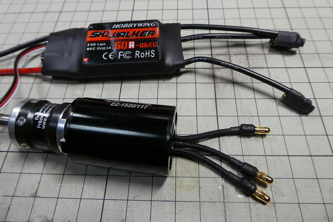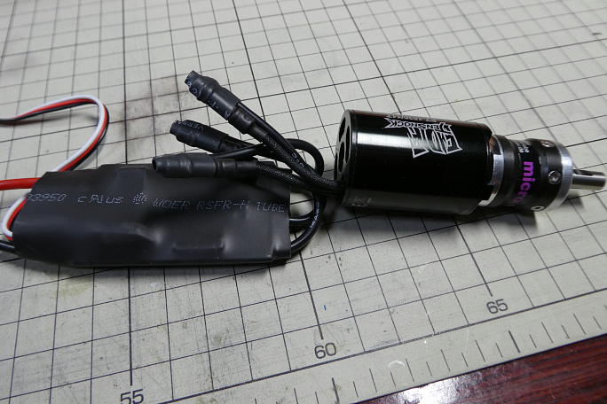 胴体に搭載しました。 モーター直後にESCが来ています。 |