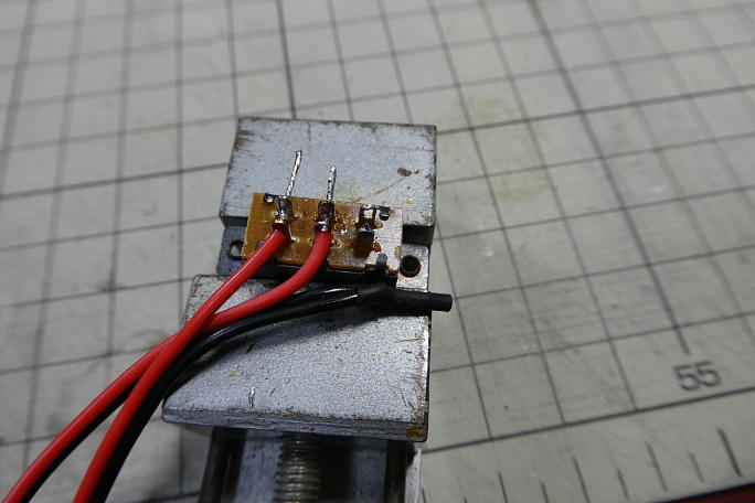 受信機電源の電源スイッチを作ります。 このスイッチはメーカー純正スイッチなのですが、コネクタとコードの構成が必要 な物と違うので、付け替えを行います。 2回路3接点のスイッチなので、2回路を1回路として使い、信頼性の向上を図ります。 |