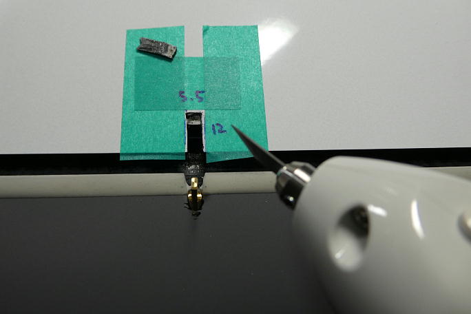 リンケージ取り出し口を加工します。 サイズは使用するクレビスなどで変わってしまうので、自分のXplorer3基準で仮に マーキングをしました。 ![]() 仮サイズの状態で表皮を超音波カッターで切り開きます。 ギリギリサイズで超音波カッターを使うと、刃の入った周辺が 歪んでしまうので、少し小さめにカットします。 ![]() 見物合わせでスムーズにリンケージが動くところまで削りました。 キット付属のフラップ用プラスホーンの首からホーン穴 までが長かったのがこの部分に響きました。 自分のXplorer3では、短いブラスホーンを探して使用したので切り欠きが小さくて済んでいたようです。 |