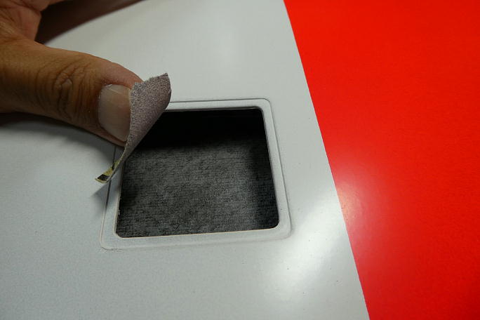 ![]() サーボホールの内壁をサンドペーパーで均しておきます。 結構ザラザラしています。 ![]() サーボロックの接着面をサンディングボードで面出しをします。 樹脂のヒケが多いので、良く削ってしっかりと平面を 出しておきます。 |