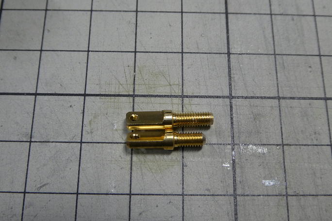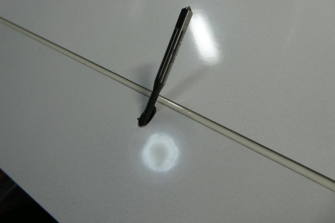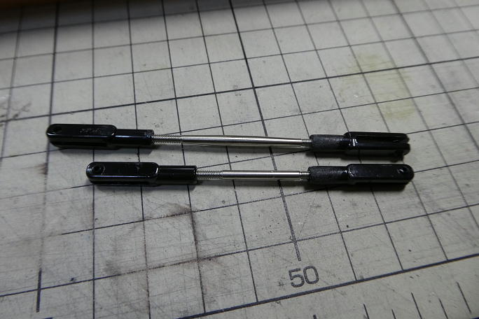 ![]() 使用する樹脂クレビスにM2のタップで予めネジを切っておく。 こうしておくと、リンケージ作業がとてもスムーズに なります。 ![]() キット付属のロッド(下)が短すぎて、このロッドを使用するとサーボが所定の位置に配置できません。 手持ちのロッドに長い物があったので、これを使用する事にしました。 |