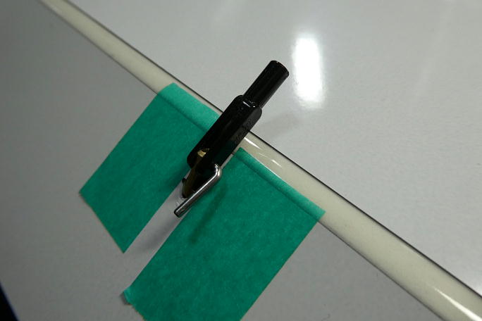 ![]() エルロンホーンの加工をします。 こちらも、雌ネジには離型ワックスやら漏れた樹脂やらが流れ込んでいるので、M3 のタップで内部を綺麗にさらっておきます。 ![]() ブラスホーンの長さを切って調整します。 切った部分は、ネジの掛かりが良いように面取りをしておきます。 ![]() ここまでねじ込みます。 この機体では、キット付属品でやっていますが、MP−JETの製品でもう3ミリ程穴位置の低い ブラスホーンがあり、そちらを使うと開ける穴も小さくできます。 ![]() エルロンは樹脂クレビスを使います。 樹脂クレビスに合わせて、クレビスの動線をエルロンを削って確保します。 マスキングテープで削る位置をマーキングしました。 ![]() マーキングに沿って、リューターの切削ビットで削り広げます。 ![]() この様に削りました。 |