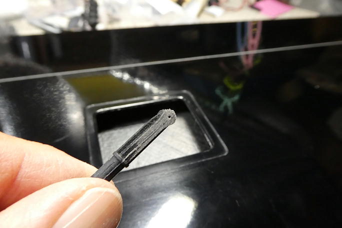 ![]() IDSシステムを使いますが、通常、IDSは動翼ホーンがギャップシール内に隠れるサイズです。 ですが、今回の製作では 動翼ホーンは通常のプラスホーンを使うので、ブレーキの動作角に不安があります。 ですので、セットに付属する一番大きなサーボホーンを使用する事にします。 ![]() サーボホーンは押し込むだけですがかなり固いです。 覚悟を決めて押し込む必要があります。 1520μsのニュートラルで2スプライン分ホーンをオフセットしてサーボに取り付けます。 ![]() ベアリングホールのバリでベアリングの入りが渋かったので、バリ取りを行います。 ![]() サーボベッドの接着面の歪みがあったのでサンディングボードで削って面出しを行います。 ![]() サーボ取り付けねじはポジドライブなので、ポジドライブドライバーで締め付けを行います。 サーボベッドに取り付けねじを、「締め−緩め」を繰り返してネジ山の道を付けます。 最終的に主翼にサーボを積み込む 際に、ネジ締めに力を掛けたくないためです。 |