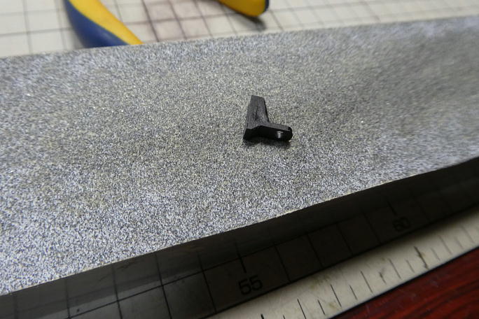 ![]() フラップサーボにならって、サーボ押さえパーツを整形しておきます。 ![]() サーボを取り付けた状態でサーボベッドの節着面の面出しを行います。 サーボも削れてしまうのは仕様のようです。 |