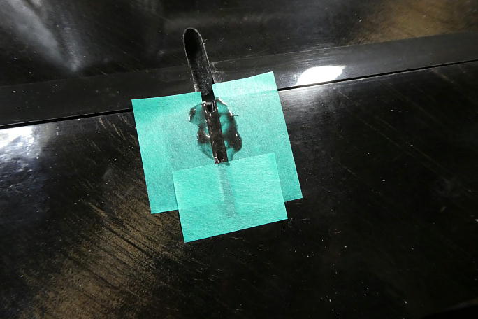 ![]() 5052にカーボンパウダーを入れた物を用意します。 ペースト状にするのではなく、刷毛で塗れる程度に混入します。 ![]() サーボホールに塗り込みます。 サーボベッドがコアに接着されることになるので、地のままでは強度不足が懸念 されます。 樹脂を塗り込む事により、コア自体が剥離してサーボが脱落する事を防止できます。 ![]() リンケージ取り出し口にも塗り込んでおきます。 コア剥き出し状態を回避できますし、スキンの剥がれ防止になります。 |