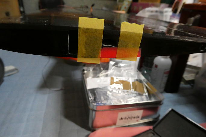 センター翼の翼端コネクタ取り出し口のサイズをメスコネクタハウジングの大きさに仕上げます。 ![]() 糸ハンダに付けたコードを引き出します。 片側のコードホールが貫通していなかったので、6ミリの真鍮パイプで くり抜きました。 ![]() 翼端でコネクタを組み立て、脱落防止にメスコネクターとハウジングを瞬間接着剤一滴で接着しておきます。 ハウジングはエポキシ系接着剤で接着するので、足付けと脱脂をしておきます。 ![]() コネクター取り出し口の内部にマイクロバルーン入り5分エポキシを充填、ハウジングにも接着剤を塗布して主翼に 差し込みます。 カンザシの角度に合わせておきます。 ![]() ハウジングは翼端とツライチになるように接着します。 外翼の翼端にはコネクターの入るスペースがありません。 |
