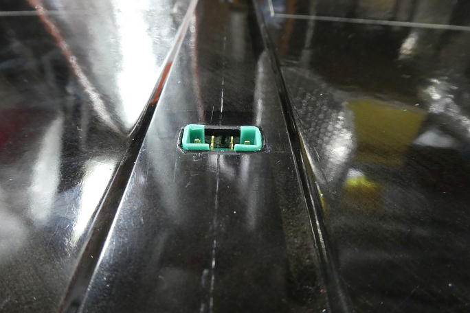 ![]() 動作テストにも使用するので、胴体側のMPXコネクターをこの時点で作っておきます。 ![]() センター翼にMPXコネクターを瞬間接着剤で接着するので、コネクター本体と主翼の接着部を硬化促進剤で拭いて おきます。 ![]() 抜き差しに爪が掛かるように1ミリ出っ張るようにします。 |