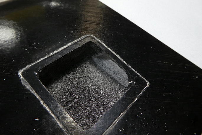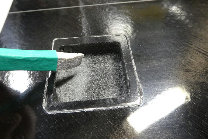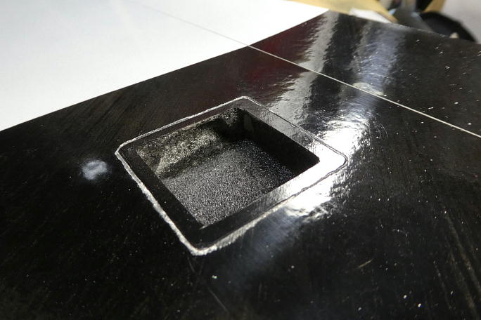 仮組して見たところ、メーカーで加工されているリンケージロッド穴とサーボの位置関係に問題が発生しました。 ベアリング組のサーボロックを使用したため、ベアリング保持部分が収まりきらないようです。 ![]() せっかく加工してあるサーボホールですが、ベアリング保持部分を潜り込ませる為に横穴を掘ることにしました。 ![]() サーボロックのベアリング保持部分が新たに掘った横穴に収まっています。 ![]() また、ロハセルコアが剥き出しになってしまったので、カーボンパウダー入り5052を塗っておきます。 ![]() サーボロック接着のために、毛羽だったサーボホールをサンディングします。 |