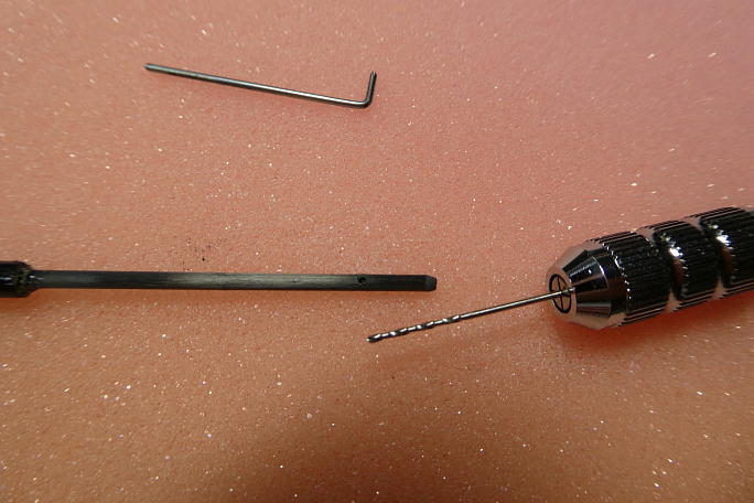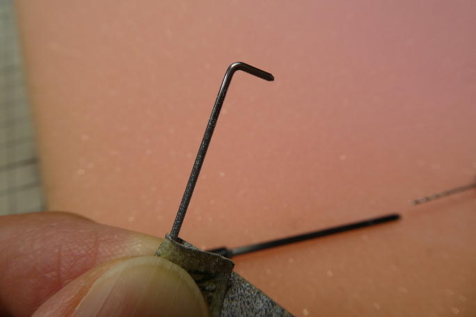 キット付属のエルロンリンケージです。 カーボンパイプにL字に曲げたピアノ線を差し込み、この部分がアジャスター になります。 ![]() 瞬間接着剤が上手く全体に流れる様に、カーボンパイプに0.8ミリの穴を開けておきます。 ![]() ピアノ線もサンドペーパーで挟んでグリグリと回し、足付けのキズを付けておきます。 |