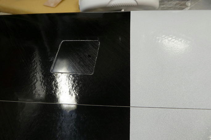 ![]() サーボホールの周囲をマスキングテープで囲い、この枠のサイズでサーボカバーを切り出します。 エルロン、フラップ共に微妙にサイズが違うので、4種類の大きさのサーボカバーを作るはめになりました。 ![]() 3ミリ幅に切った両面テープでサーボカバーを取り付けます。 |